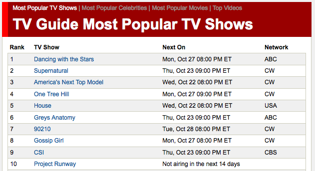 With the rest of America. I've never seen most of these shows, and only regularly watch House.Me and Tea